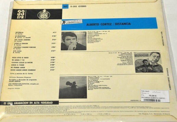 VINYLE 33 TOURS 30 cm - HISPA VOX - ALBERTO CORTEZ - DISTANCIA