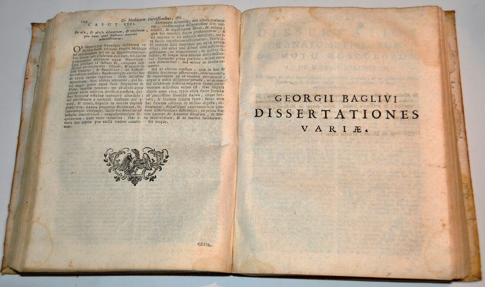 G. BAGLIVI: Opera Omnia Medico-Practica, et Anatomica. Editio XVIII LATIN 1752
