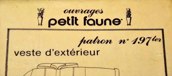 PATRON PETIT FAUNE N° 197ter - VESTE D'EXTERIEUR Tailles 8 Ans - 10 Ans - 12 Ans