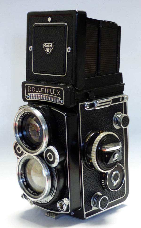 Supebe Rolleiflex légendaire planar 2.8F/80 mm bouchon avant d'origine avec posemètre fonctionnel, sac tout prêt en cuir d'origine avec sangle de cou, étui porte pare-soleil RIII avec deux filtres RIII: Orange 1,5...-3 + Rollei -U-V - Le tout dans un état proche du neuf.