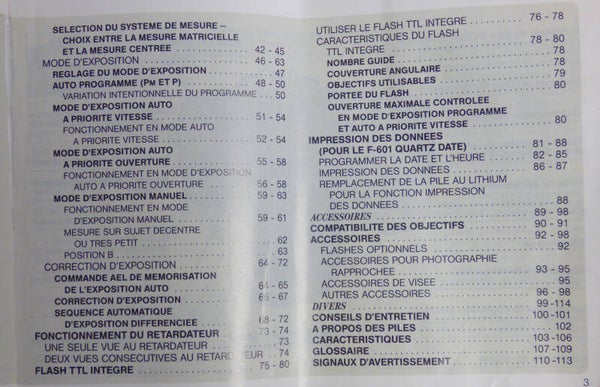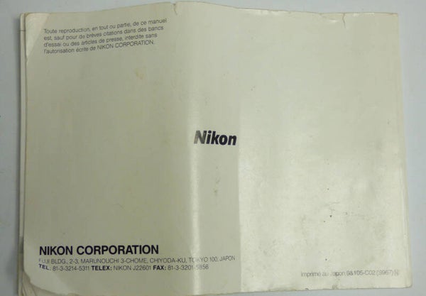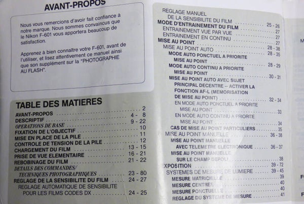 NIKON F-601 AF - AF QUARTZ DATE - MANUEL D'UTILISATION -FRANCAIS