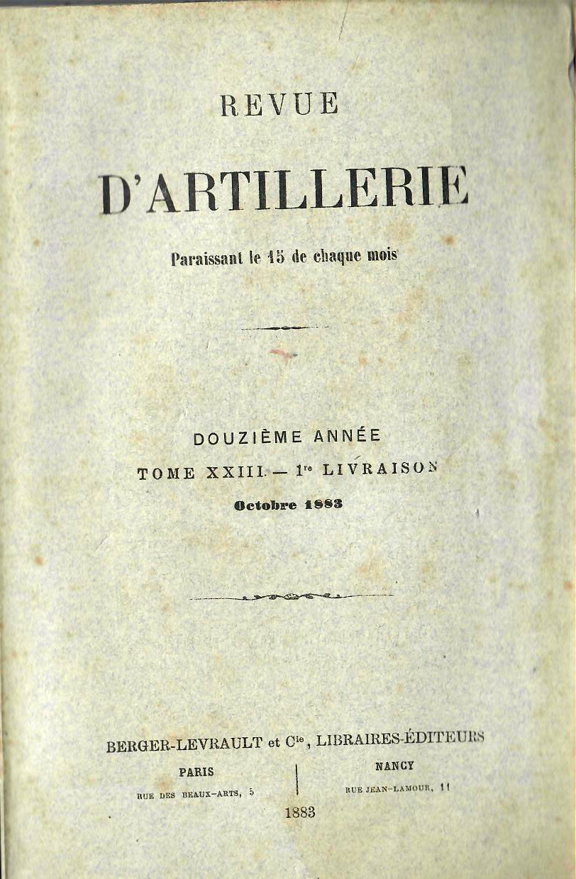 REVUE D'ARTILLERIE TOME XXIII OCTOBRE 1883 1° LIVRAISON