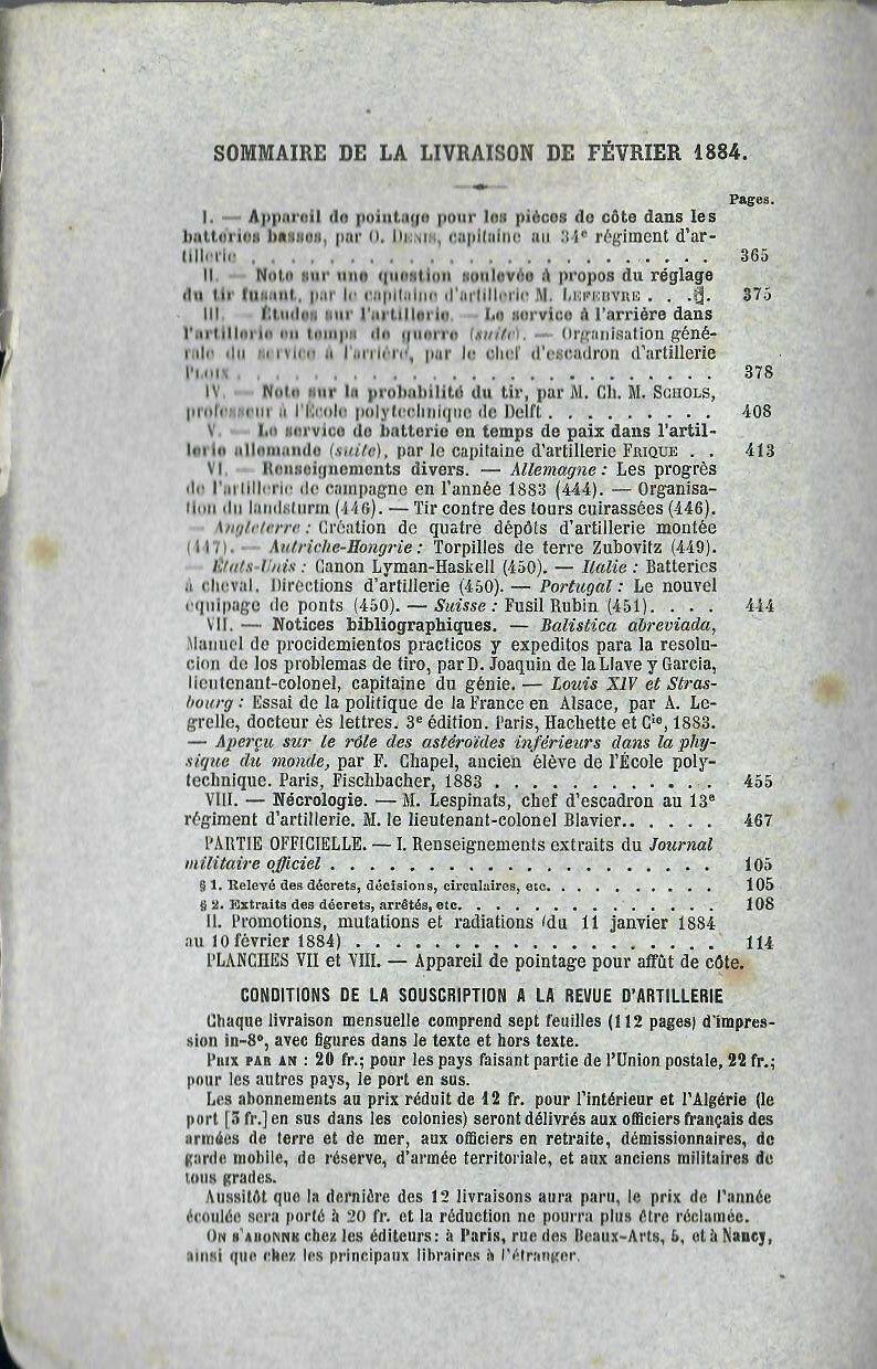 REVUE D'ARTILLERIE TOME XXIII FEVRIER 1884 5° LIVRAISON
