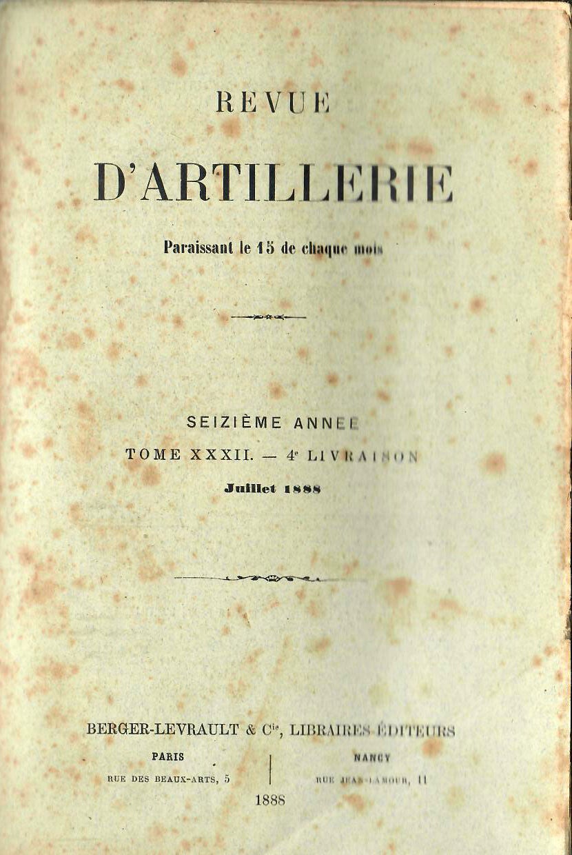 REVUE D'ARTILLERIE TOME XXXII JUILLET 1888 4° LIVRAISON
