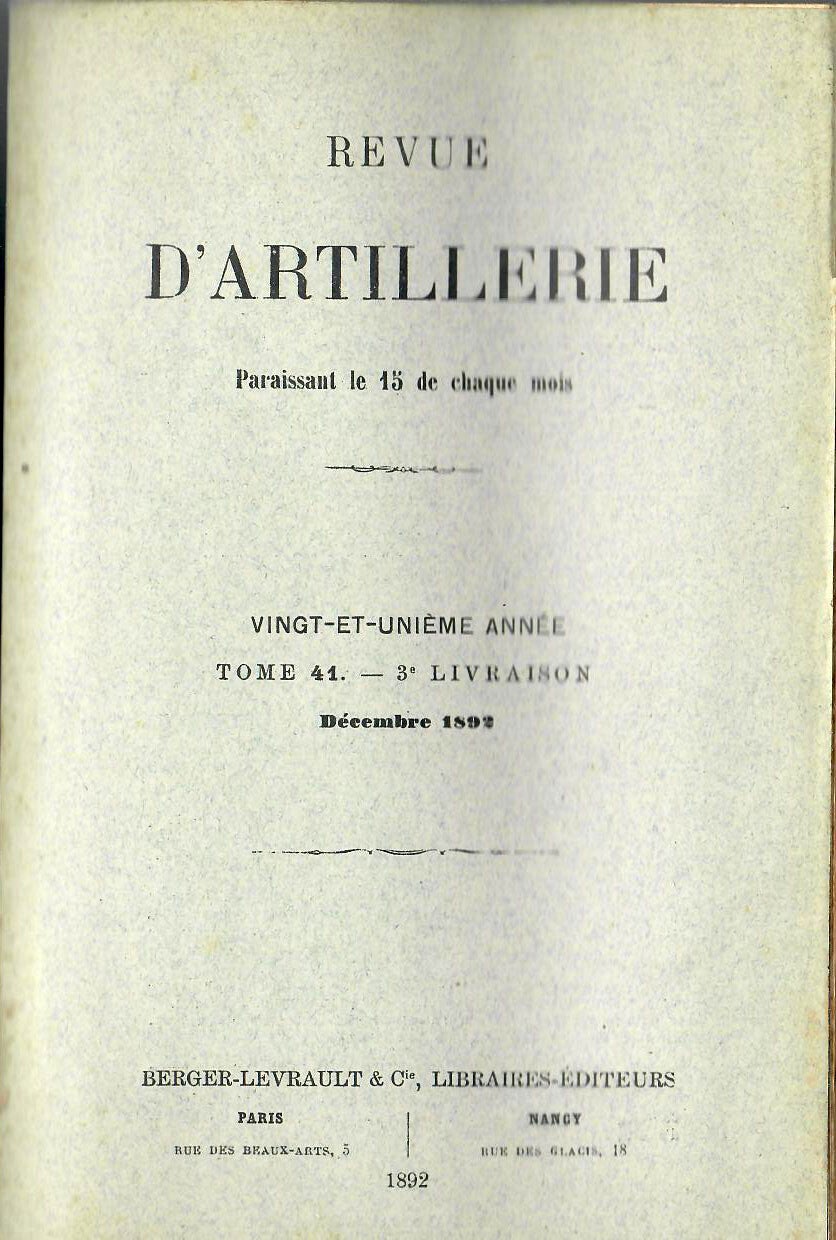 REVUE D'ARTILLERIE TOME 41 DECEMBRE 1892 3° LIVRAISON