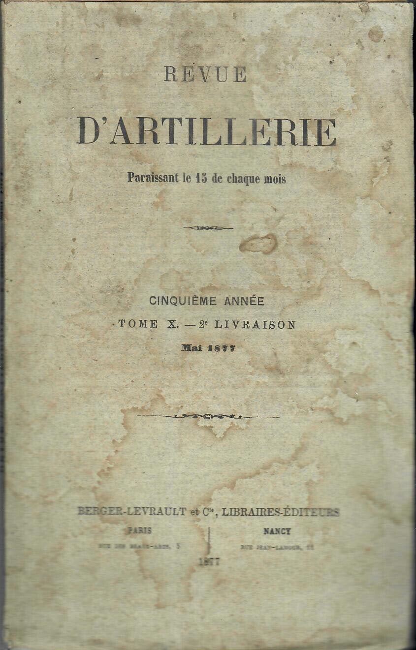 REVUE D'ARTILLERIE TOME X MAI 1877 2° LIVRAISON