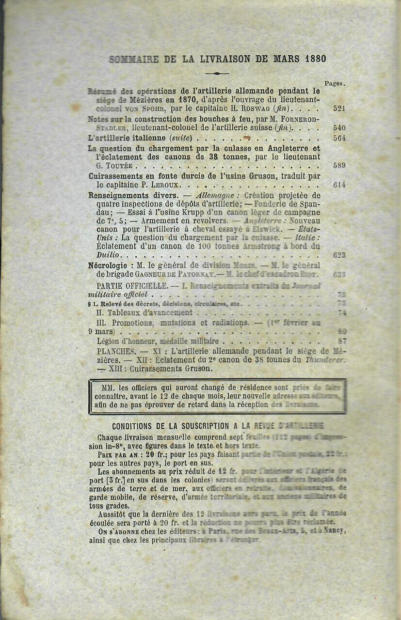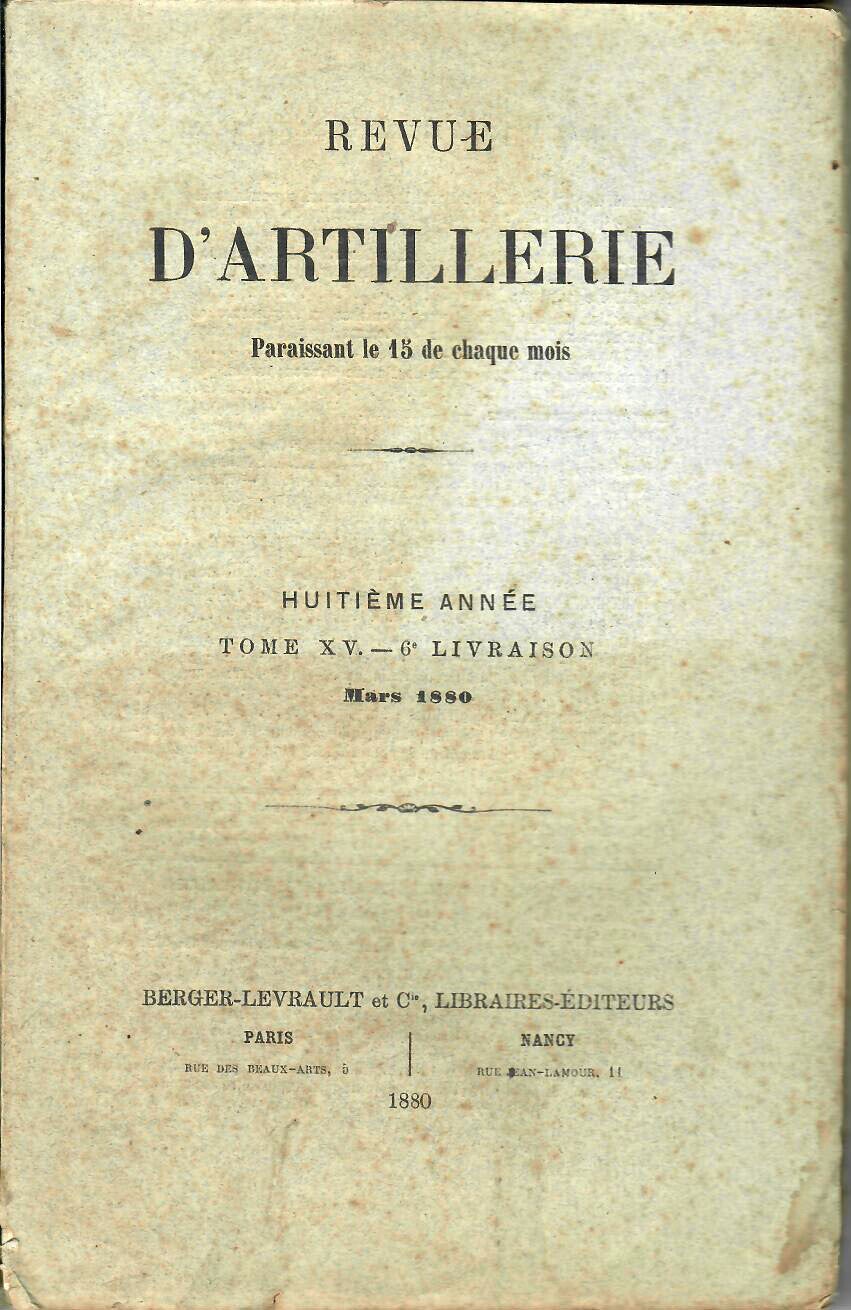 REVUE D'ARTILLERIE TOME XV MARS 1880 6° LIVRAISON