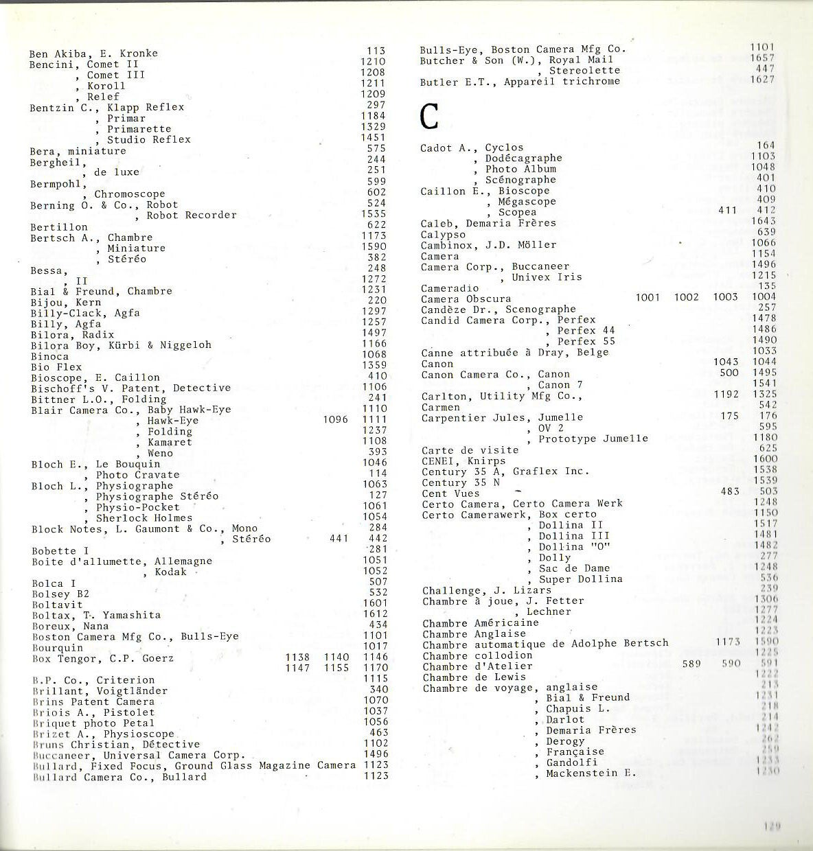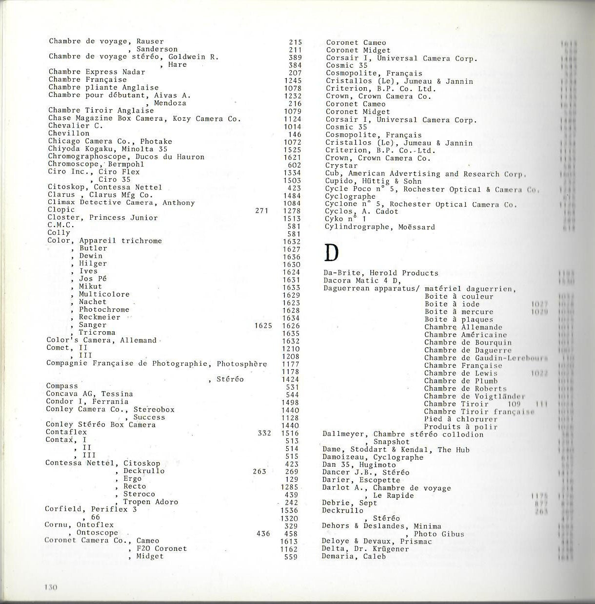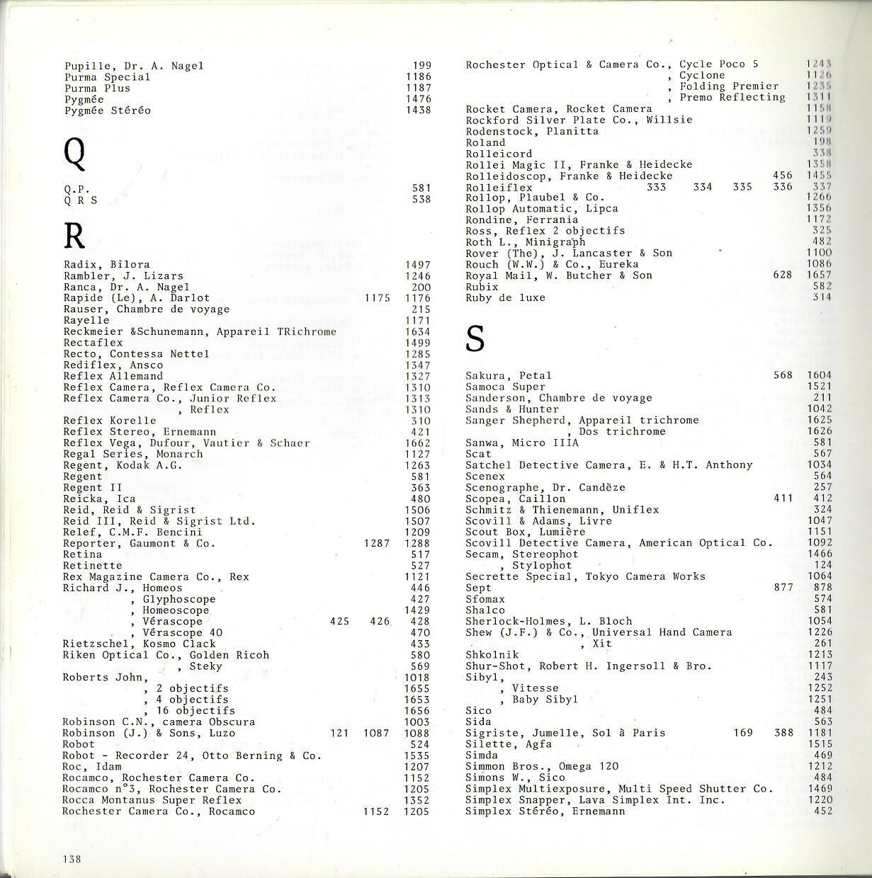 Textes anglais et Français - repertoire de nombreux appareils photographiques des l'appareils Daguerriens aux appareils réflex en passant par les miniature et les appareils spéciaux. (664 appareils)
