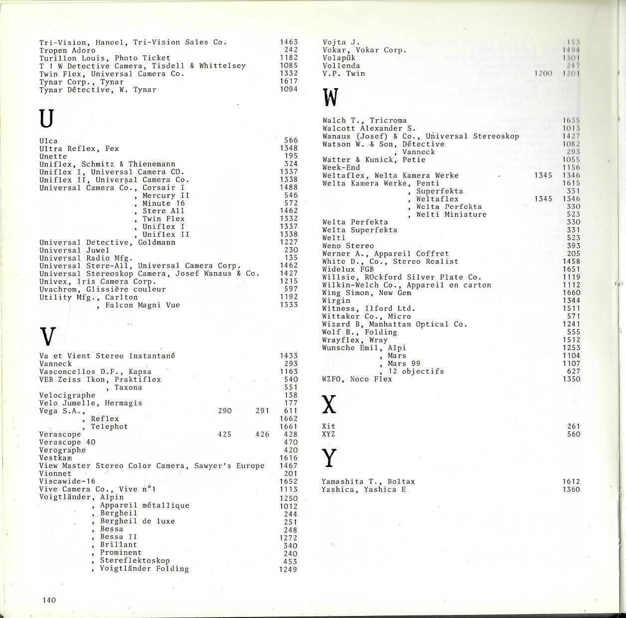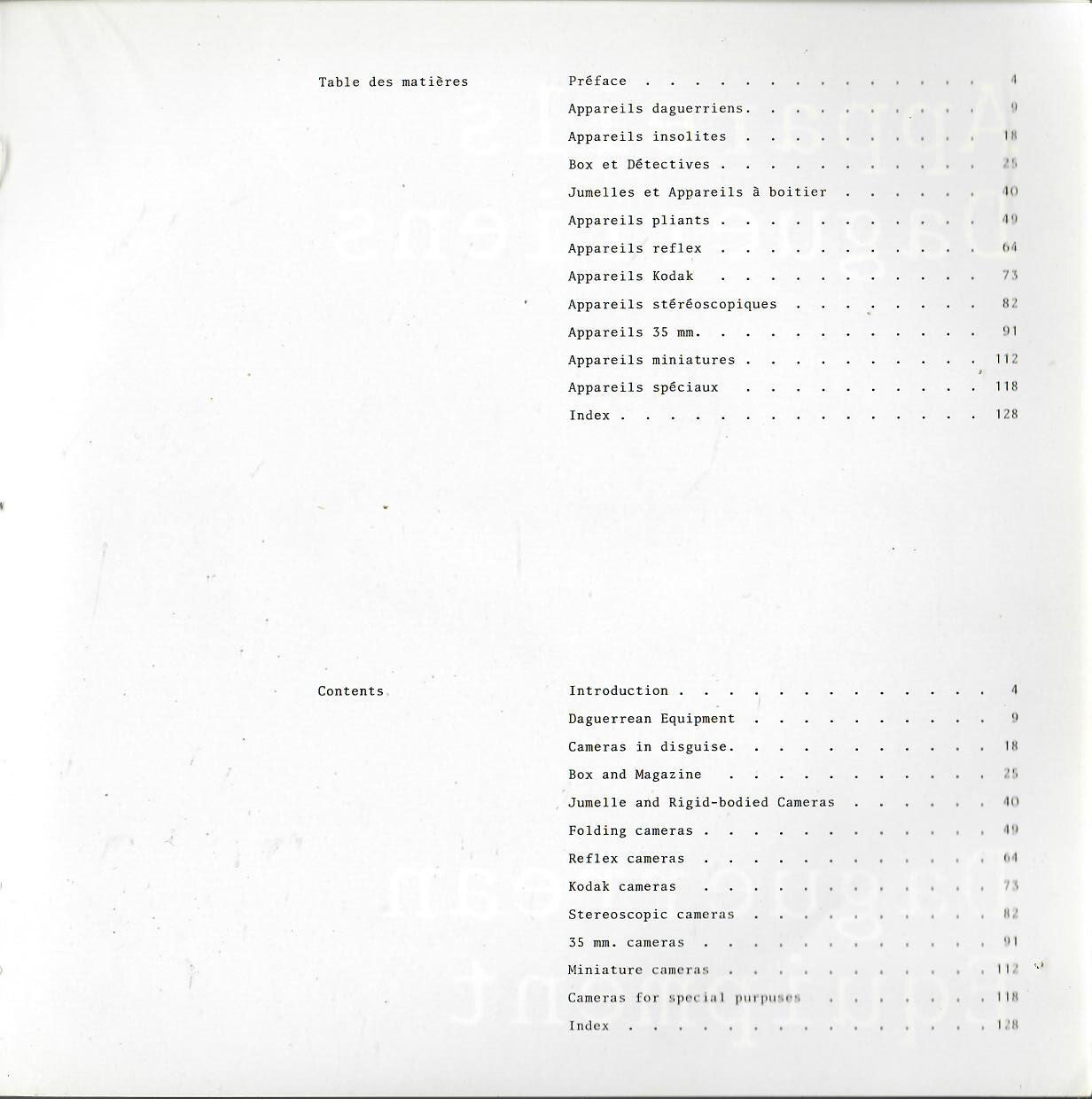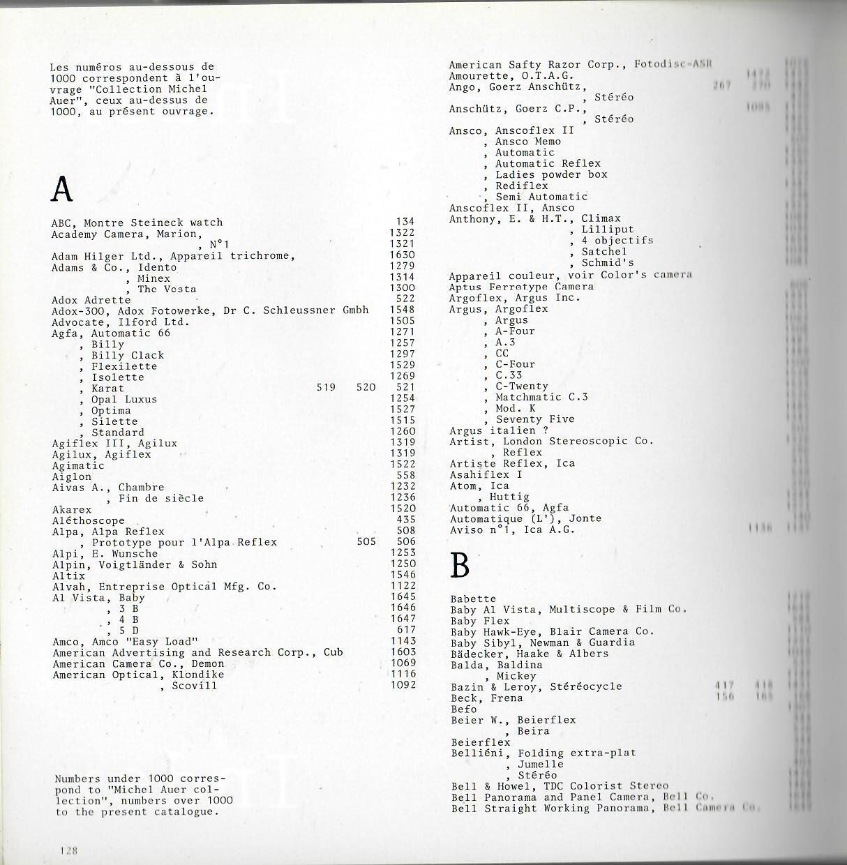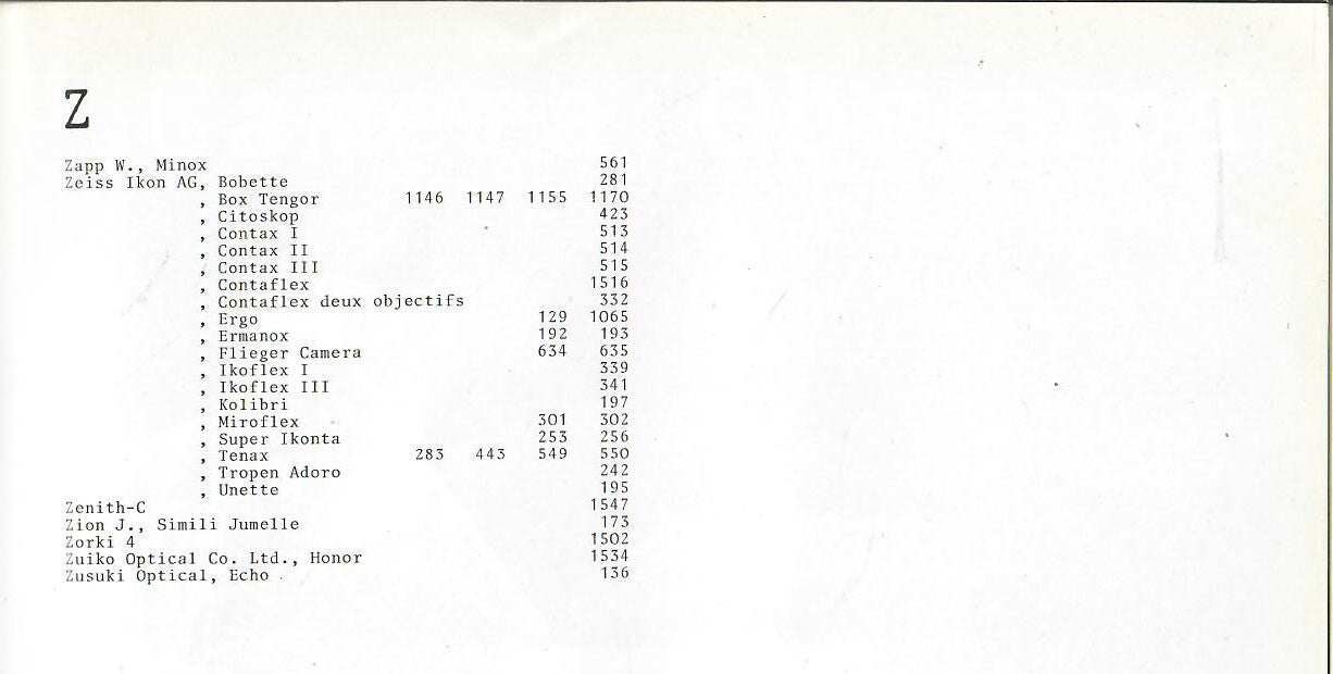 Textes anglais et Français - repertoire de nombreux appareils photographiques des l'appareils Daguerriens aux appareils réflex en passant par les miniature et les appareils spéciaux. (664 appareils)
