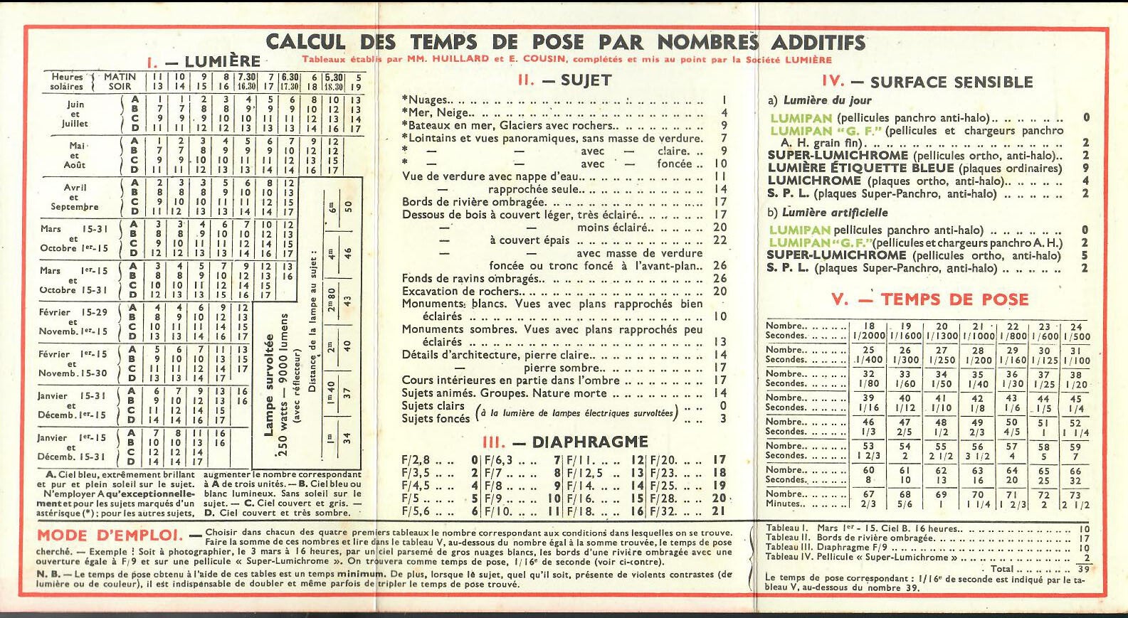 LUMIÈRE TABLE DES TEMPS DE POSE