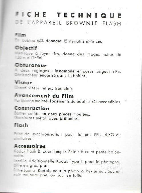 KODAK - BROWNIE FLASH CAMERA FORMAT 6X6 NOTICE